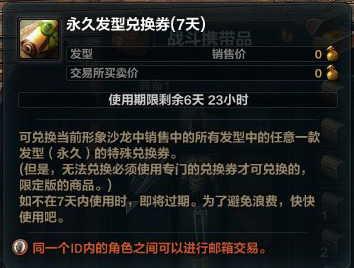 9月17日(维护后)后至9月24日(维护前),永久发型兑换券(7天)惊喜上线,限时销售!小伙伴们千万别错过限时销售时机哦!长发、短发、卷发等等,各种造型任君选择!PS:入手此兑换券的小伙伴们,还请抓紧在7天兑换时效内兑换哦~~~