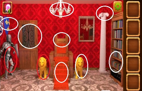 刚才查看了左边的狮子,现在再来查看右边的狮子,这里有个皇冠,点击捡起来。
