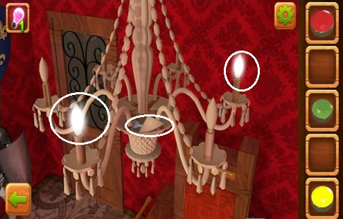 现在点击吊灯,将第二根蜡烛和第四根蜡烛点燃,可以获得一把钥匙。
