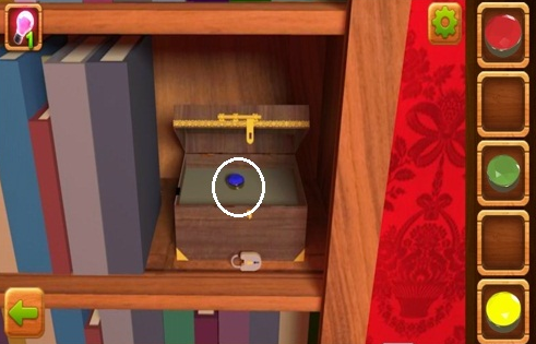 然后再来点击书架,这里有个木箱子,用钥匙将木箱子打开,里面有个蓝宝石,点击拾取。