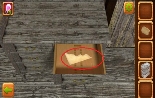 再点击门左边的矮柜上面的抽屉,在抽屉里面获得一节纸片。