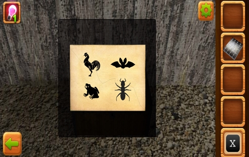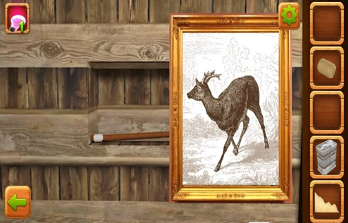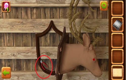 现在回到楼上根据纸片上的提示,将墙上的鹿头上面的图案调整成鸡、蝙蝠、青蛙、蚂蚁,可以打开后面的暗格,获取后面的老虎钳。