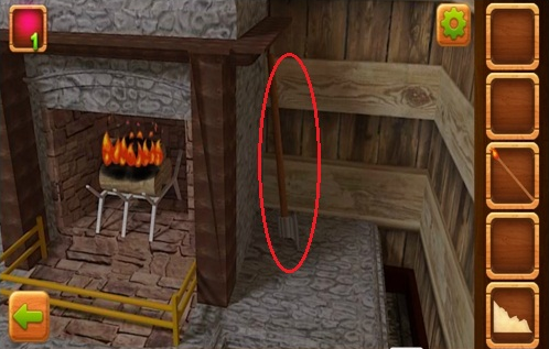 现在将我们获得的油桶、布卷和木棍进行合成,合成了一个油木棍,将这个木棍在壁炉中点着,壁炉旁边还有一把斧头,也捡起来。