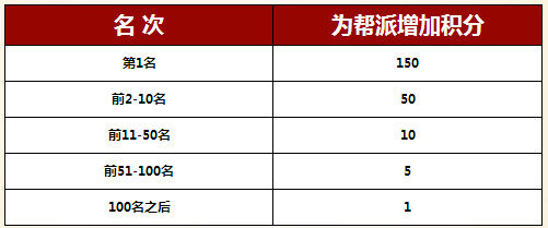 本玩法将在国庆活动期间,每日的10:00,14:00,18:00开启帮派竞赛,半小时内,帮派中每个成功登顶,完成任务的成员,均会根据完成任务的名次为自己的帮派增加对应的积分,半小时之后,各个帮派可以根据自己帮派的积分前往李世民处领取奖励。