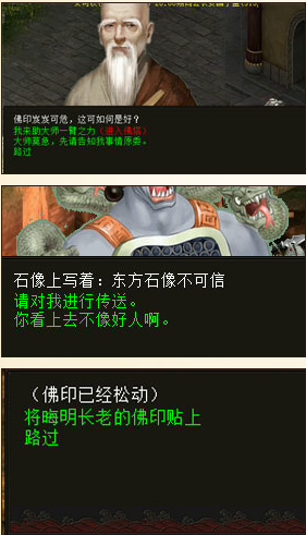 2)每个石像上均写有拓字,需要同各个石像对话来获取石像上的拓字。