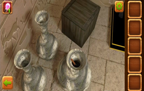 现在点击左边三个花瓶中,比较胖的那个花瓶,在里面可以发现一把铲子。