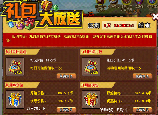 另外还有超值冰点礼包:九月畅享包、九月金魂包限量购买!