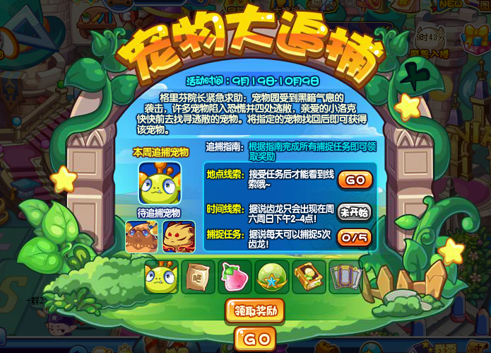 2、根据活动面板的提示,在活动时间内,完成所有的捕捉5次捕捉任务即可