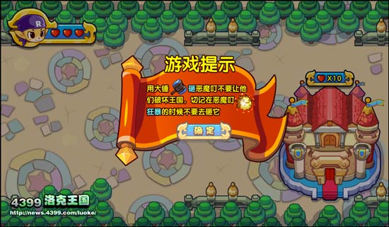 2、使用大锤攻击恶魔叮,阻止他们破坏王国,凑够10个神锤就可以兑换加尔哦!PS:每日可挑战次数有10次哦!