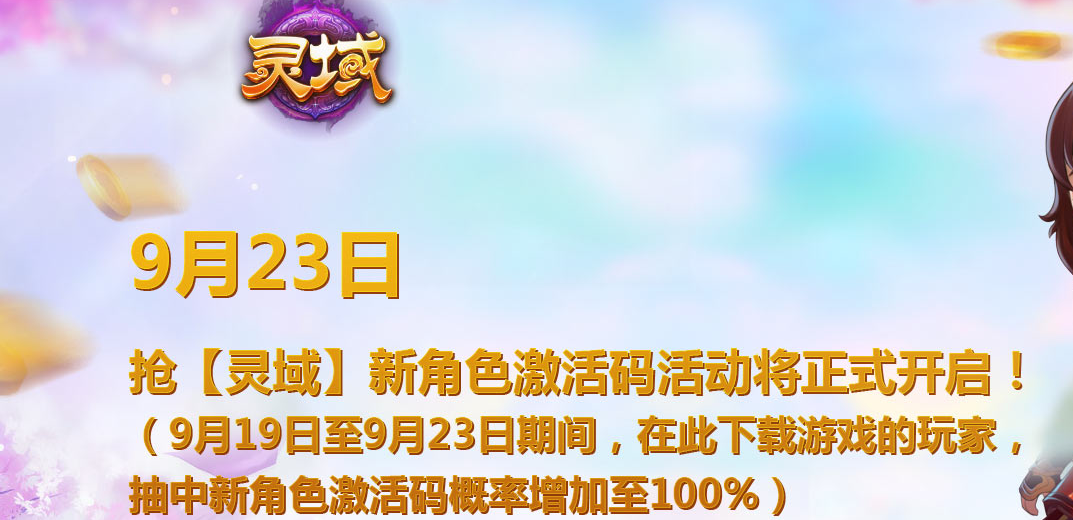 抢新角色激活码活动开启时间:9月23日