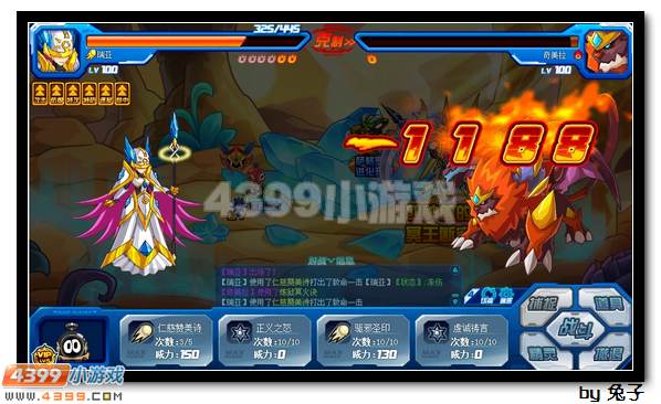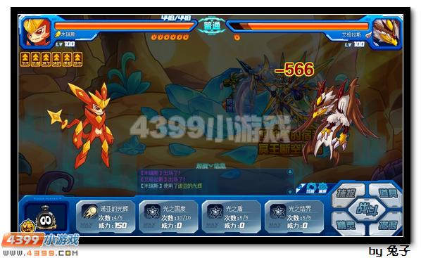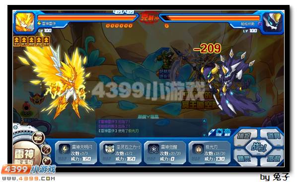 然后雷伊登场,先强化免控,然后回血,这样循环使攻击+4以后就开始攻击吧!对方强化就及时消除掉,很快就能打死两条命。同时,这里也可以使用圣皇挑战。强化,回血,大招慢慢耗死~~