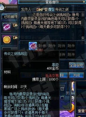dnf传说之剑挑战函一共有两种获得方法,一个是每日登陆获得,最早登录游戏的角色可以获得一个。另一个就是通关推荐地下城3次可以获得一个。玩家每天最多获得7个!