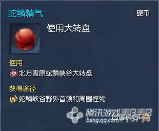 转转盘用的蛇鳞精气可以在蛇鳞谷的怪物身上获得