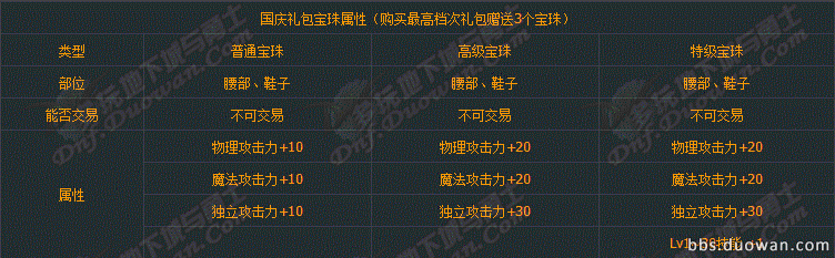 dnf的最重要的两个礼包就是每年的国庆套装礼包和春节套装礼包了,2014年的国庆马上就要到了,这次小编给大家带来的是最新的dnf国庆套礼包的详细内容,感兴趣的朋友千万不要错过哦,赶快来看看吧。最新的消息已经公布了国庆套的外形,万圣节的恶魔翅膀附送了独立的武器装扮,并且礼包内还会首次附带节日克隆装扮。