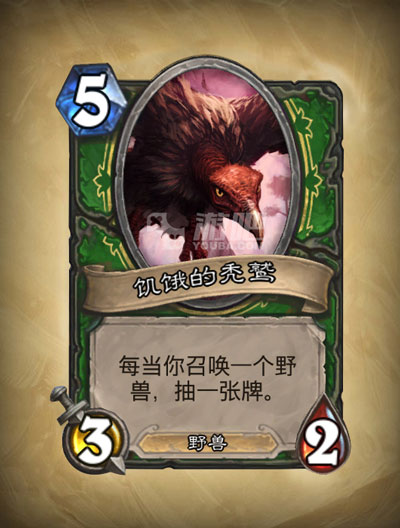 而饥饿的秃鹫,由于其费用很低,因此可以让猎人抽取大量卡牌。这个改动可以给猎人的对手更多时间来应对饥饿的秃鹫及其抽取的卡牌。