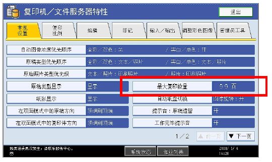 3. 选择[ 最大复印数量 ]。