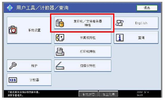 2. 进入[ 复印机/文件服务器特性 ]菜单。