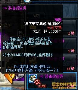 DNF2014国庆节庆典邀请函兑换奖励一览: