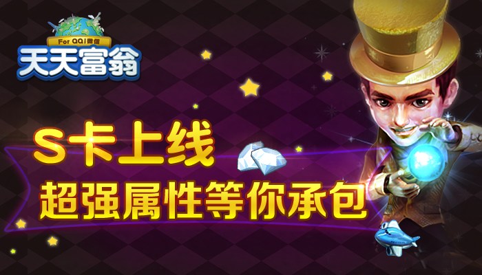 天天富翁首开S卡上限,超多回馈等你来承包!据悉,天天富翁于今天也就是9月23日迎来了全新S卡的上线,新卡的到来,必有新的活动出现,没错,从即日起到9月25日,天天富翁将开展S卡返钻大回馈等八大活动,超强的五维属性全面超越A+卡,整体附加属性120点起跳!幸运道具第四格同步开放!现游戏提供卡盒抽取、进化两大途径获得S卡,想要承包超强属性的富翁们赶快前往获取!以下是活动详情介绍,小伙伴们赶紧了解起来吧!