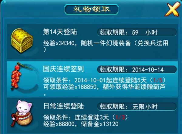 国庆节活动期间,连续登陆满5天即可获得华诞馈赠~