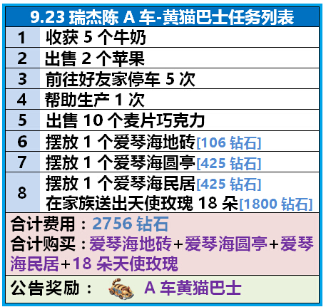 《全民小镇》9月23日最新任务来啦!想要知道今天也就是9月23日《全民小镇》的任务花费和奖励吗?下面小编就为大家带来《全民小镇》9月23日(周二)杰瑞陈金灿灿任务奖励一览,一起来看看吧!