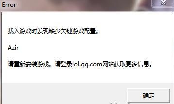 有玩家在匹配队伍选新英雄Azir,进入游戏进度条到达90%左右,游戏就弹出了,显示缺少文件Azir,出现这种情况时,玩家只要更新一下就OK了,还是不行的话可以卸载了重装一下!