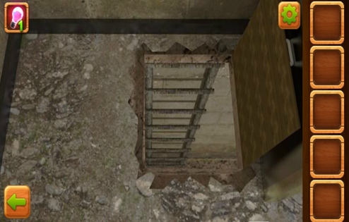 里面露出一个木制的暗格,将之前获得的把手安装上去,打开,露出下面的楼梯,点击下去。