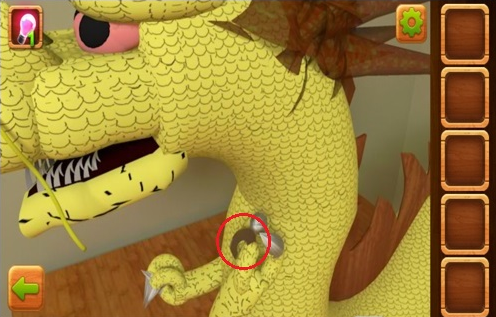 点击桌子上的那个黄色的龙,在他的爪子上拿到一个钩子。