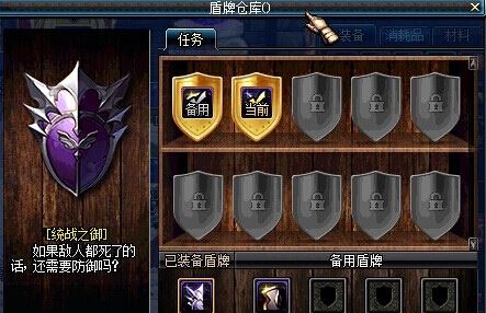第三步:直接左键任务中的已经拥有的盾牌到下面备用盾牌区域