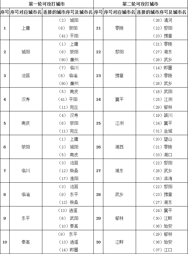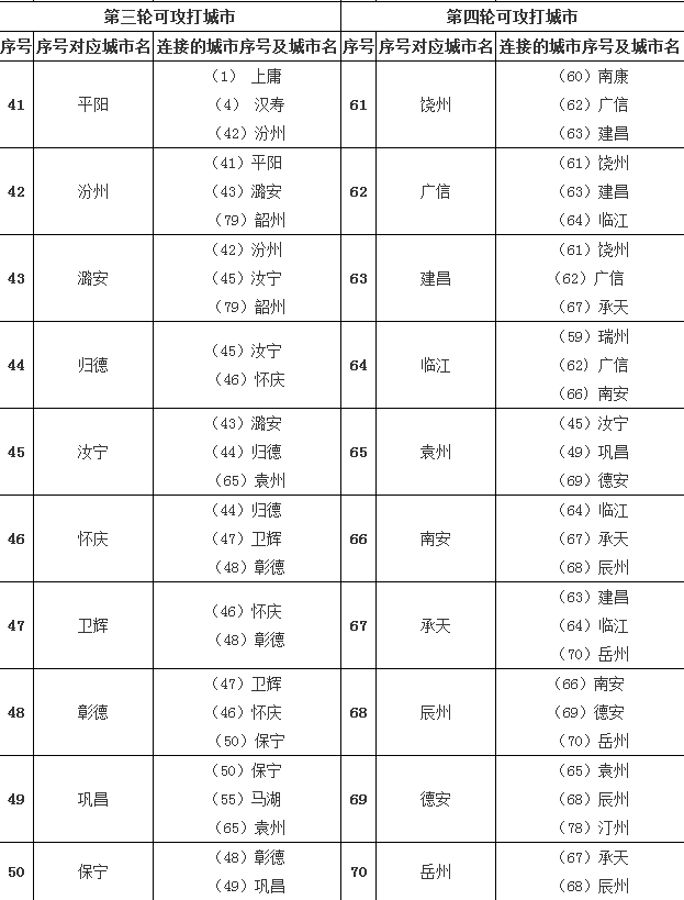 注:如某区组参与完一场城池的战斗并攻占城市后,如果此城市仍于其他城市相连,则会继续参与下一时间的战斗。