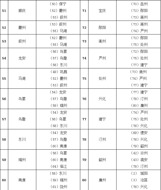 每届中州争霸分为4轮,每1 周进行1轮,玩家可在中州争霸指引人处查询自己区组是否可以参与攻城或者守城。每场中州争霸首轮可攻打城池为序号1-20号城池,第二轮可攻打21-40号的城池,第三轮可攻打城市为41-60号,第四轮可攻打城池为61-80号,已经占领城池的区组可以攻击自己所占城池所连接的区组且该被连接区组符合本轮攻打的条件。每个城池在一届之中只能被攻击1次,未占领任何城池的区组每届都可以参与一次城池争夺战,城池标号及相互连接关系如下图: