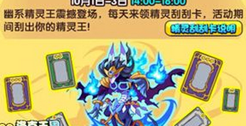 从国庆开始新版的暗黑系的精灵王即将登场,除了到时间能从九零小子进化之外更有挂挂卡可以获取,刮刮卡是玩家在10月1号到3号每天下午的2点到4点领取的。