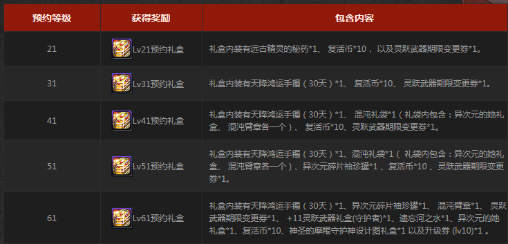 最先达成预约等级的精灵骑士或者混沌魔灵可以获得如下对应的奖励: