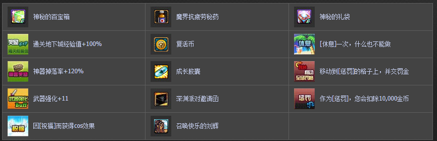 游戏中的格子包含以下内容: