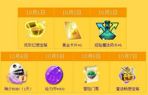 10月1日至10月7日期间,每天来签到,即可获得大量热门道具,切莫错过哦!
