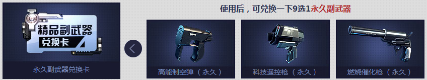 2、使用兑换卡,可100%兑换以下任意1把永久副武器。