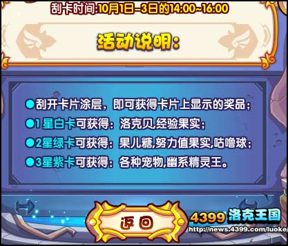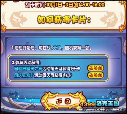 2014年的国庆马上就要到来了,国庆乐翻,天洛克王国为小洛克们准备了精灵刮刮卡,刮卡就有可能获得幽系精灵王冥暗幽王哦!洛克王国精灵刮刮卡怎么得?下面小编就给大家详细介绍洛克王国精灵刮刮卡获得方法吧。