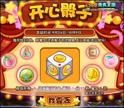 洛克王国开心骰子活动在9月26日开始了,9月26日-10月9日活动期间,在线就能丢骰子,丢出奖品,丢出快乐,小洛克们赶紧行动吧,下面小编就给大家详细介绍洛克王国开心骰子活动内容吧。
