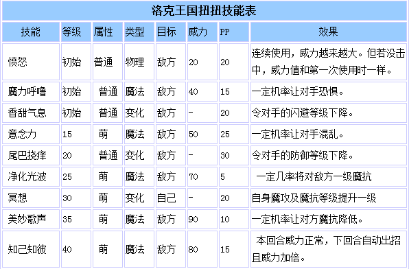 洛克王国扭扭技能表