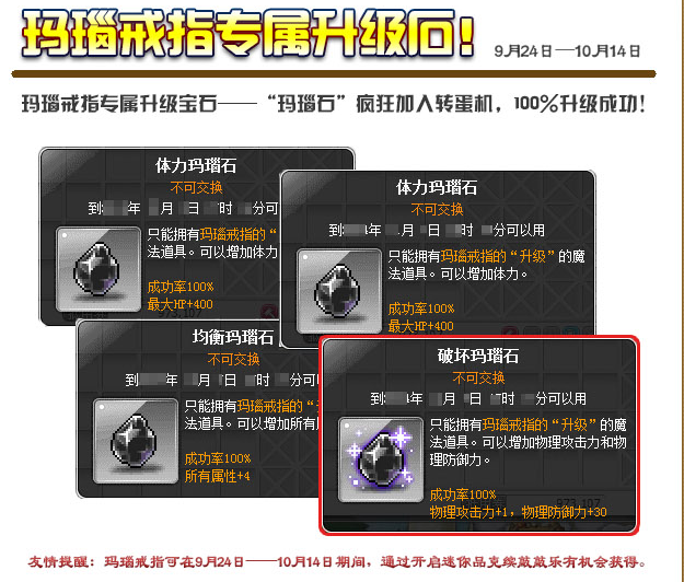 同时,转蛋机中的所有玛瑙石爆率提升3倍!