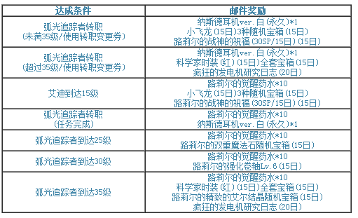 1、活动期间,14级以下未转职的艾迪经验值1.5倍,34级以下弧光追踪者经验值1.5倍;
