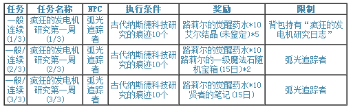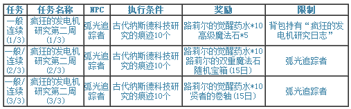 古代纳斯德科技研究的痕迹:接受“疯狂的发电机研究”任务后通关适当等级副本获得奖励。