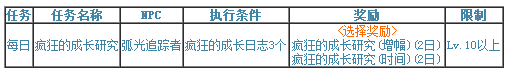 活动内容:活动期间,通关适当等级副本及可获得经验值的场景怪物可获得“疯狂的成长日志”。