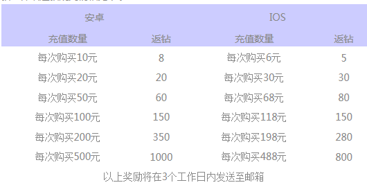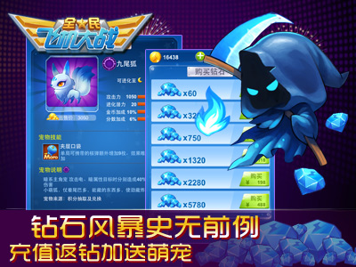迎新版、贺国庆!9月27日至10月7日,钻石商城超高比例充钻送钻重磅出击,还有两大萌宠满额即送,最实惠的购钻时机,千万别错过!活动期间,玩家首次单笔充值6元即送168钻,累计充值达300元送狂暴强化攻击力的暗系宠飞镰神将,累计充值达500元再送核弹专家九尾狐!同时,商城充钻返钻同步开启,单次购买最高返1000钻!详细返钻规则请相见下表: