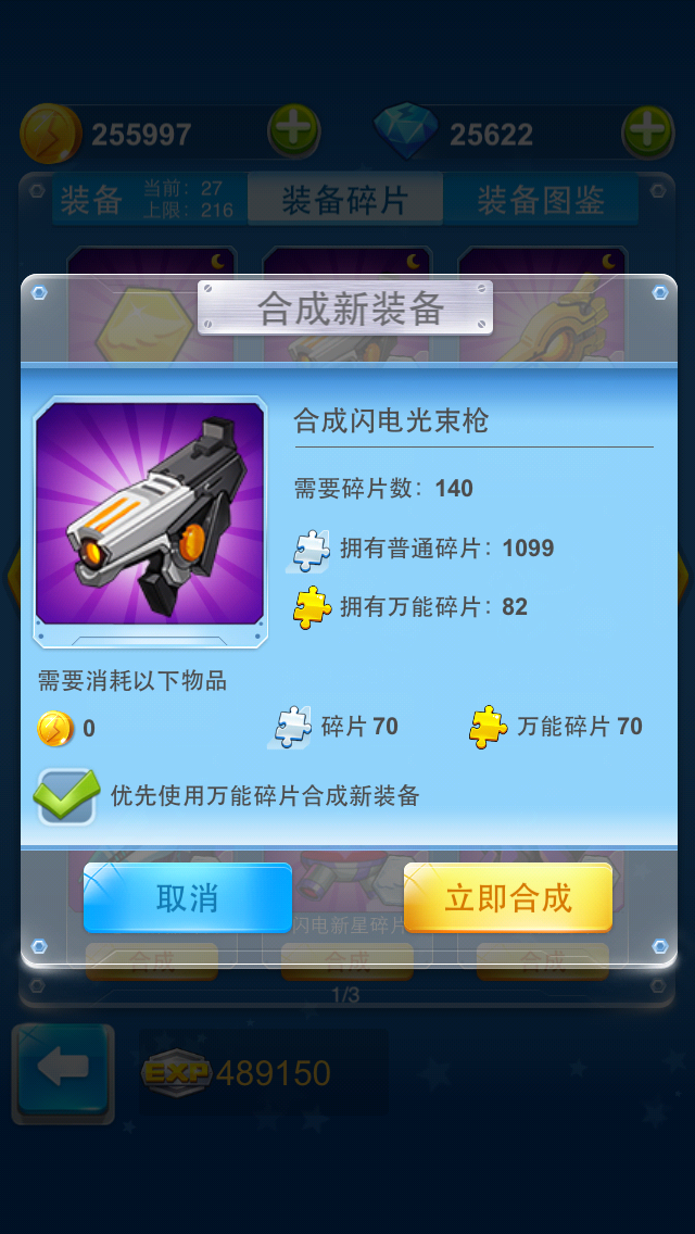 A7:合成装备需要用到装备碎片或者万能碎片,每合成一件装备需要用到的碎片不同,除了该装备碎片外,游戏内还有万能装备碎片供玩家合成装备使用。