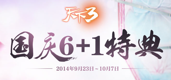 十一国庆节马上就要到来了,天下3为大家准备了一系列惊喜连连的国庆活动,伴你度过一个阳光灿烂的国庆黄金周。天下3国庆节有哪些活动呢?下面东坡小编就给大家详细介绍天下2014国庆节活动攻略吧。