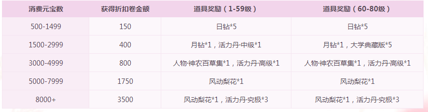具体奖励列表(消费时间10月1日至10月7日)