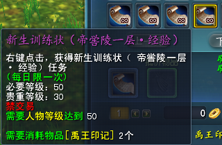 挑战权限需在中秋国庆商人购得新生训练状才可,一种FB每日一次。需要消耗禹王印记2个