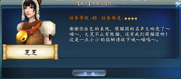 活动介绍:长假来临,大荒中可爱的萌猫团要出动守护节日的和平啦,你愿意加入他们,完成大荒各地可爱小宠们请求的委托吗?加入萌猫团你可以变身为可爱的猫咪完成任务哦。