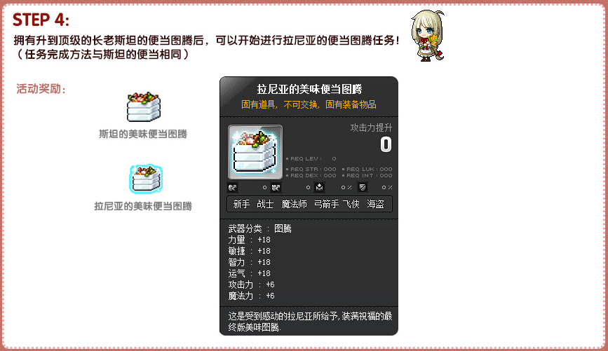 冒险岛美食节即将在国庆节隆重举办了,有拉尼亚、长老斯坦、南哈特和管理员组成了超豪华的评审阵容!打造舌尖上的冒险,你敢来挑战吗?可以获得拉尼亚的美味便当图腾哦!下面小编就给大家详细介绍活动情况吧。